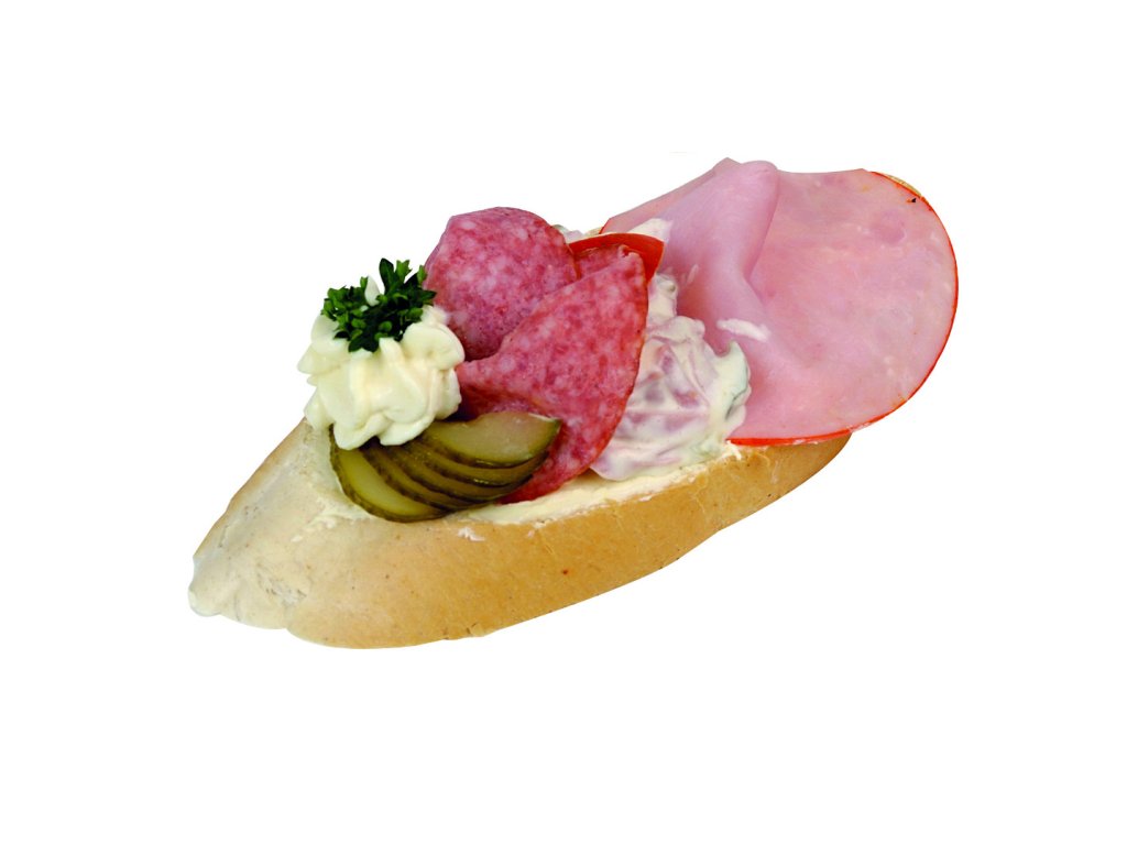 veka, máslo, salám vysočina, debrecinka, pařížský salát, sterilovaný okurek, sýr tavený, rajče