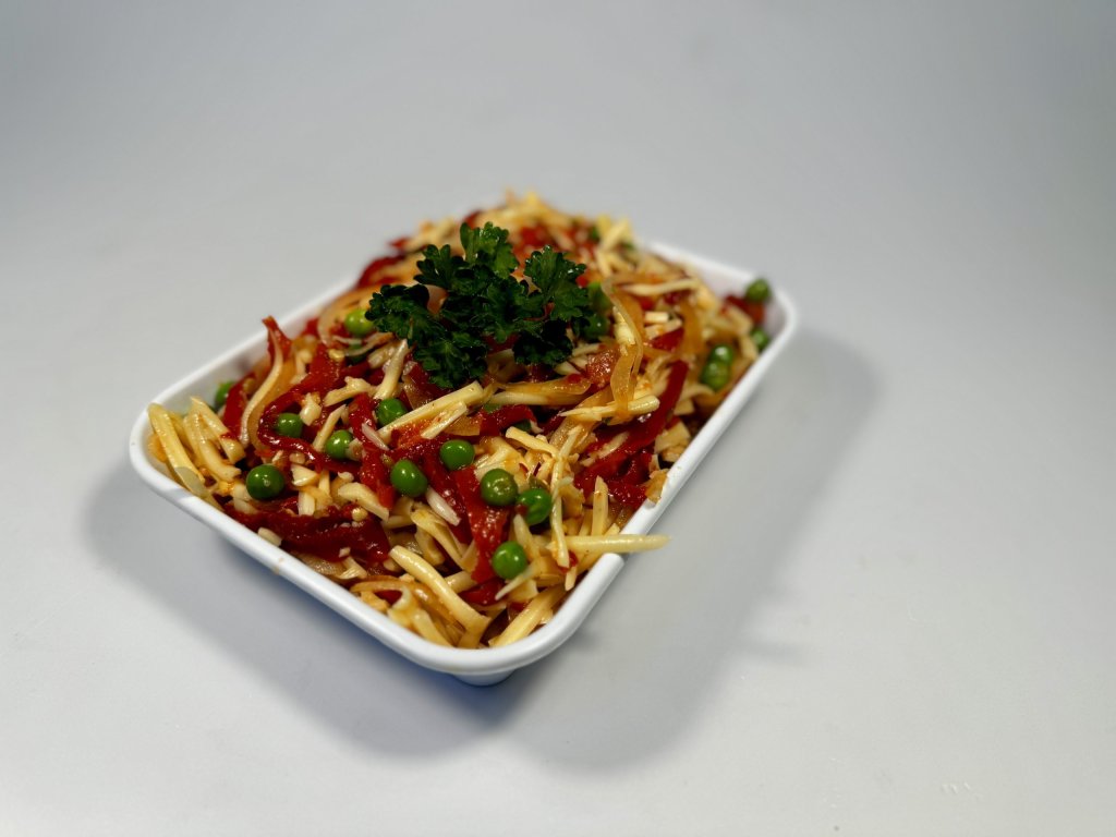 sýr eidam, paprika červená a zelená, čerstvá cibule, sterilované feferony, čerstvý hrách, koření