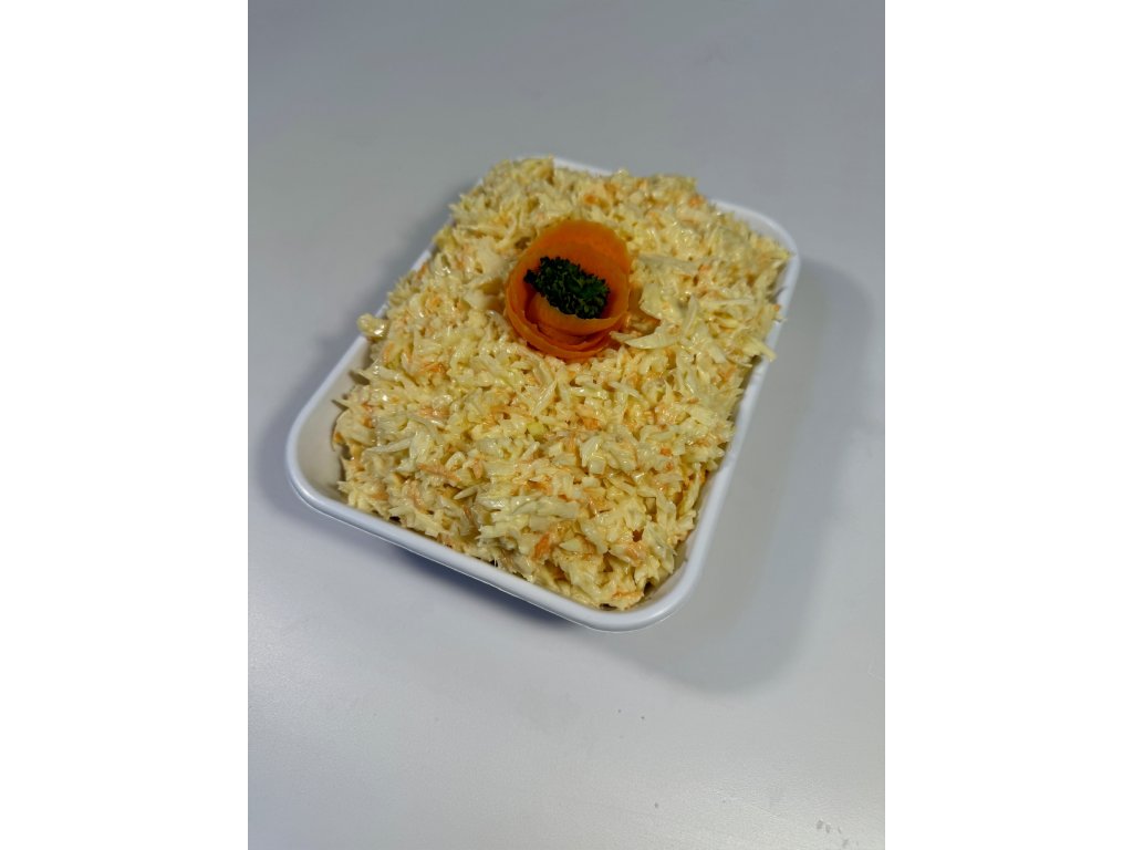 bílé zelí, mrkev, cibule, olej, majonéza, yofresh, citron, hořčice, cukr, sůl, pepř