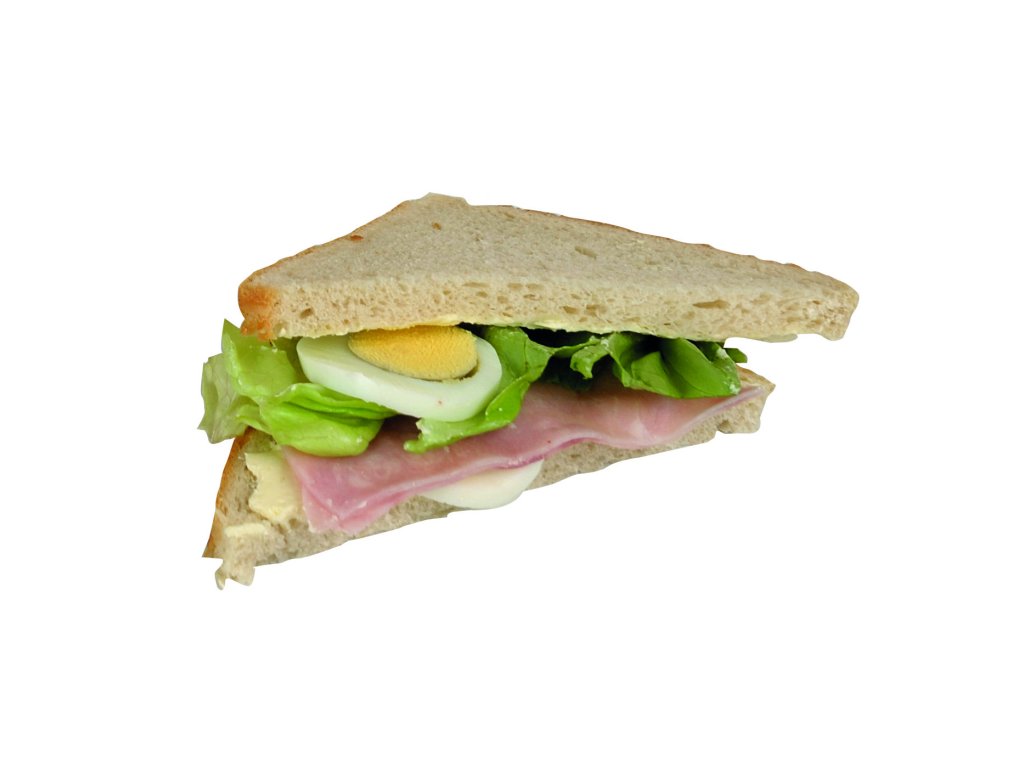 sendvičový chléb, máslo, šunka, vařené vejce, hlávkový salát
