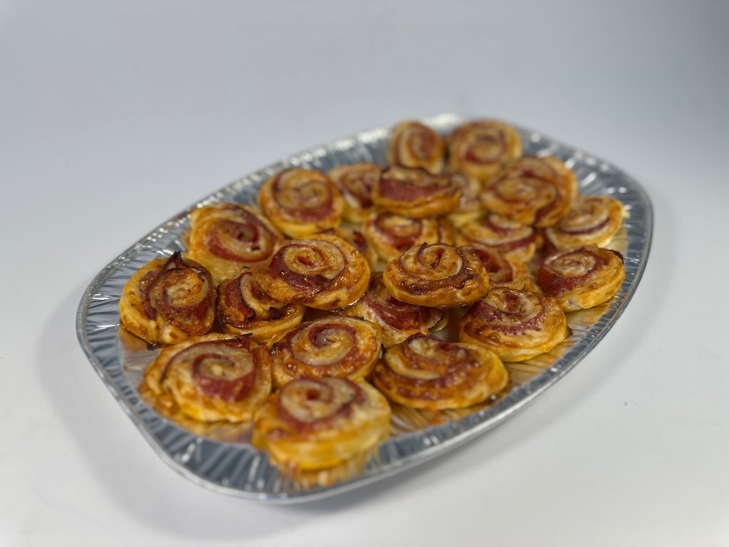 Složení: listové těsto, salám vysočina, vejce, kečup, sýr eidam