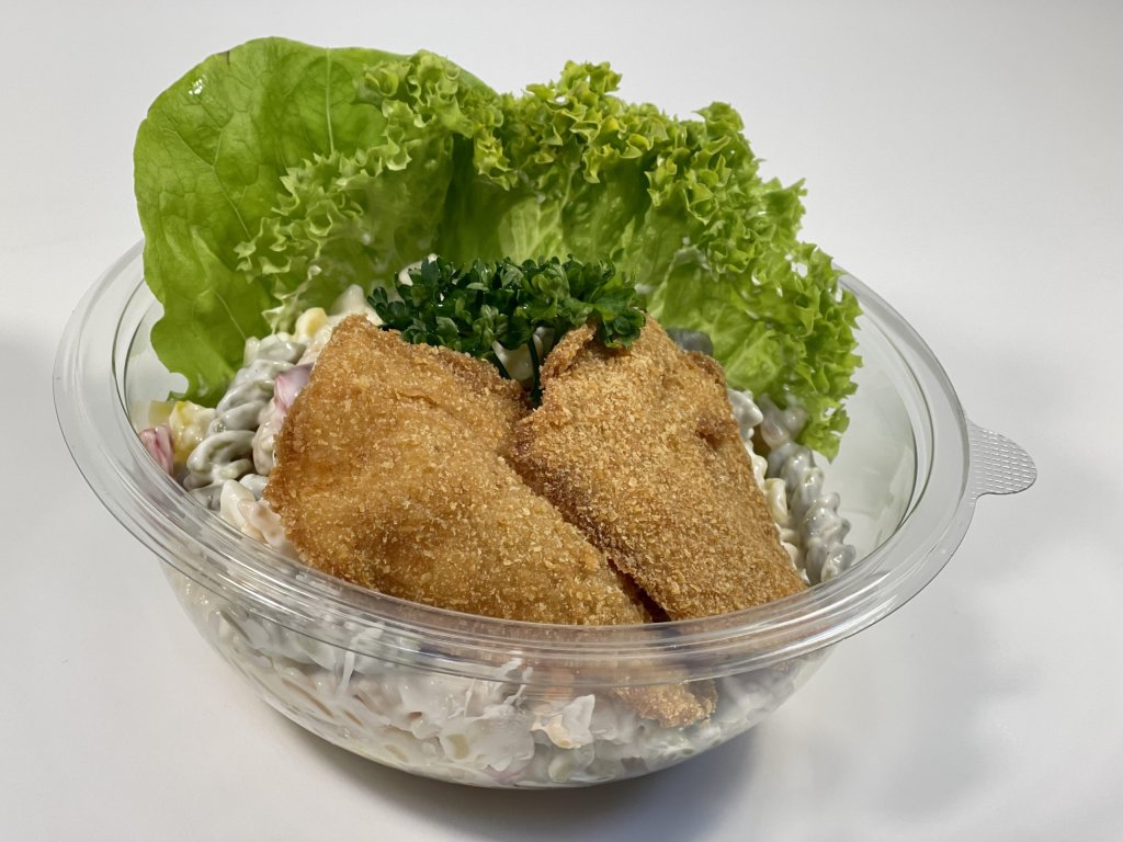 Těstovinový salát se smaženým kuřecím řízkem 45o g